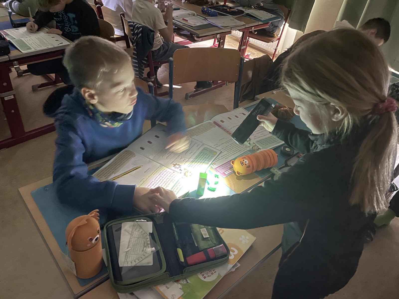 Mit der Taschenlampe haben wir verschiedenste Versuche zu Licht und Schatten gemacht. Anschließend haben wir diese auch in unserem MINKT-Heft notiert. Es hat uns gut gefallen, diese Versuche im finsteren Klassenzimmer durchzuführen. Spannend war das!