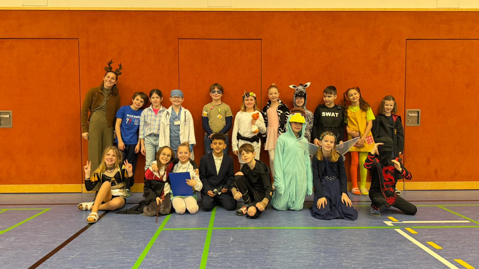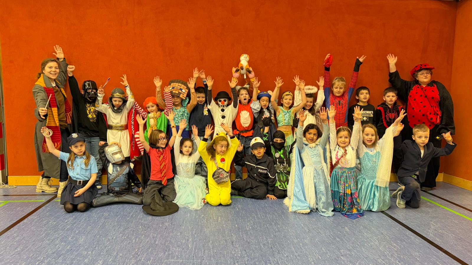 Am Faschingsdienstag war es dann endlich auch für unsere Schülerinnen und Schüler so weit. Gleich nach dem Läuten versammelten sich die verkleideten Kinder mit ihren Lehrerinnen zur bereits traditionellen Parade im Turnsaal. Begleitet von fröhlicher Marschmusik zogen sie ein und präsentierten stolz ihre fantasievollen Kostüme. Neben vielen neuen, kreativen Ideen waren auch heuer wieder beliebte Klassiker zu bewundern.