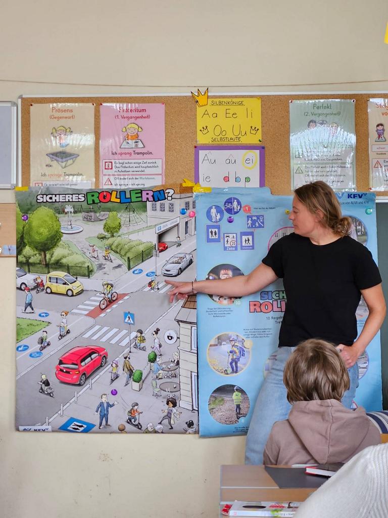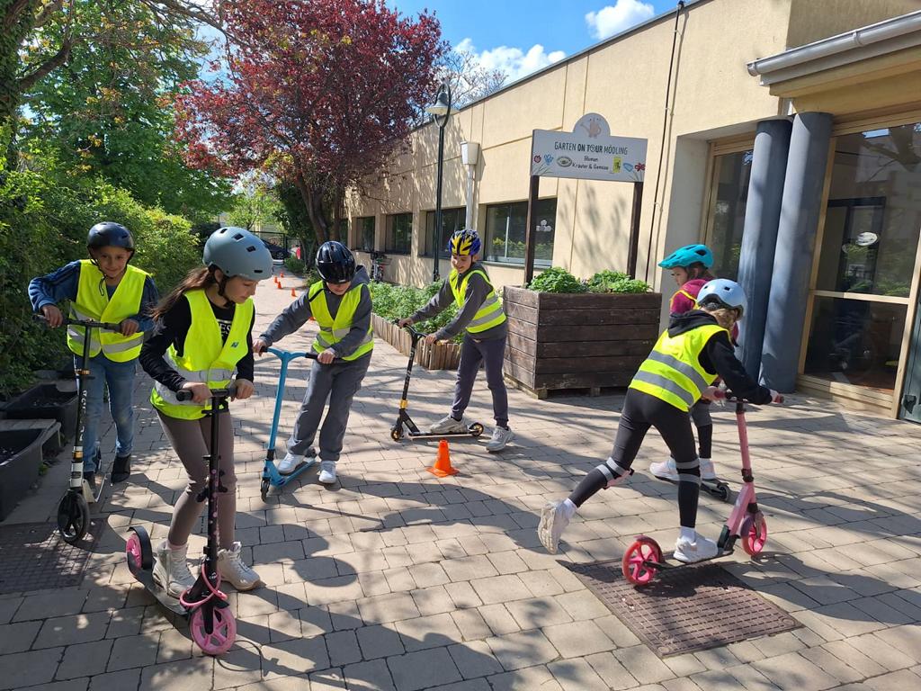 Am Mittwoch, dem 22. April 2026, nahmen die Kinder der 3. Klassen an einem kostenlosen Workshop zur Verkehrserziehung teil, der vom Kuratorium für Verkehrssicherheit (KFV) durchgeführt wurde. Ziel der Veranstaltung war es, den Schülerinnen und Schülern wichtige Verkehrsregeln sowie sicheres Verhalten beim Rollerfahren im Straßenverkehr näherzubringen.