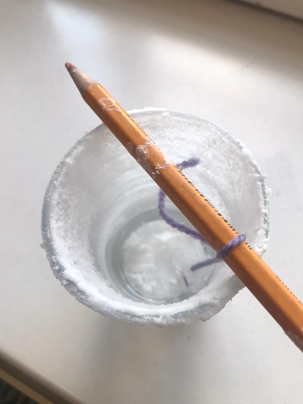 Wir haben unsere eigenen Salzkristalle gezüchtet und dann farblich gestaltet.