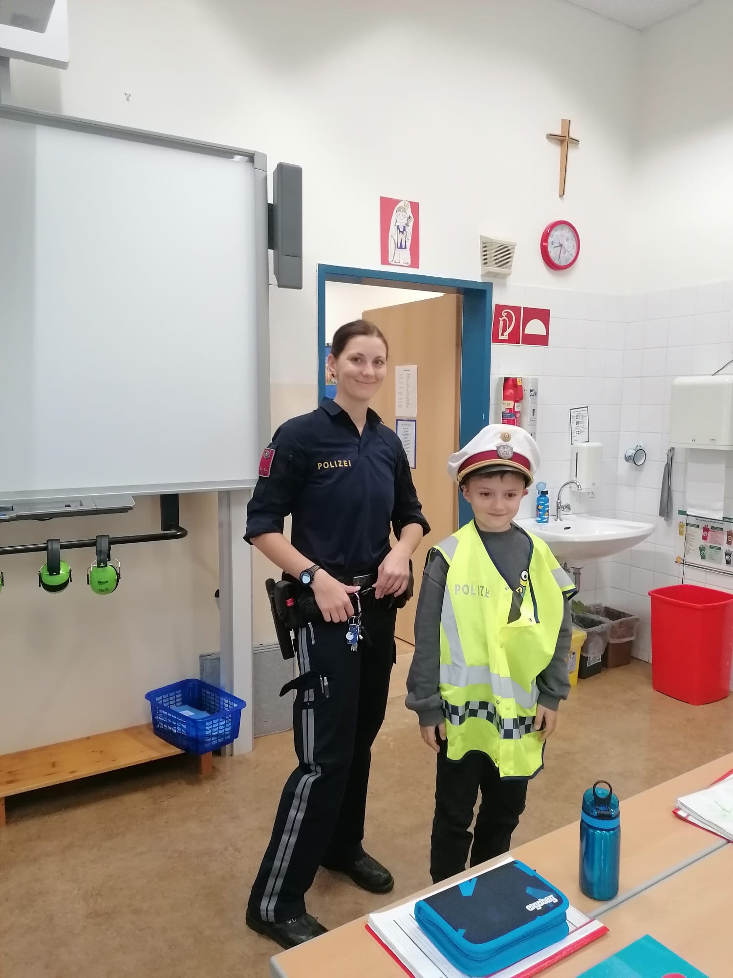 Am 17.10.2025 bekamen die ersten Klassen Besuch von der Polizei. Gemeinsam lernten wir, uns richtig neben und auf der Straße zu verhalten und diese sicher zu überqueren.